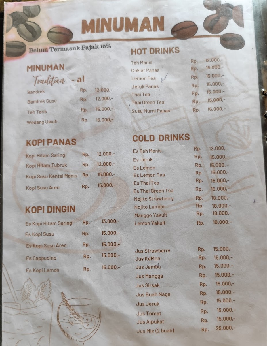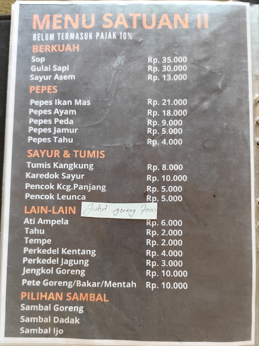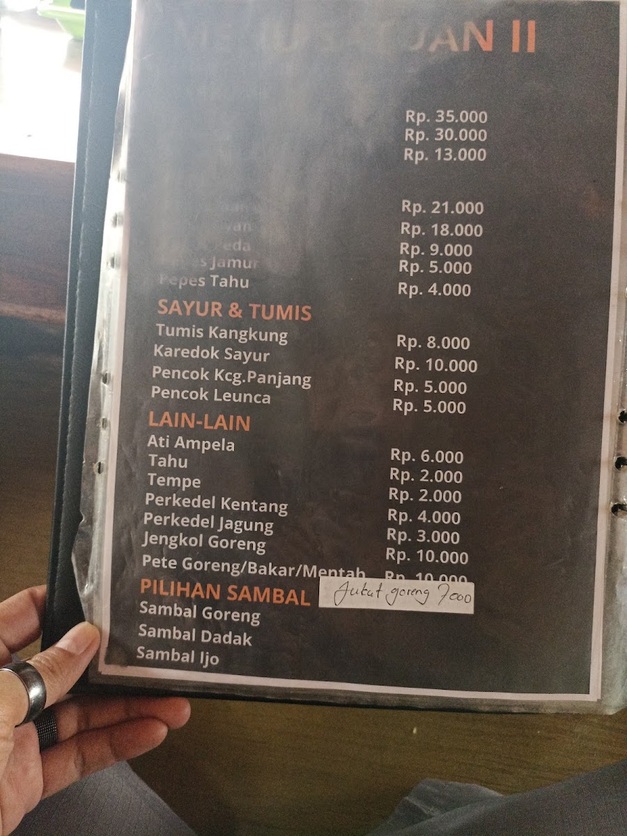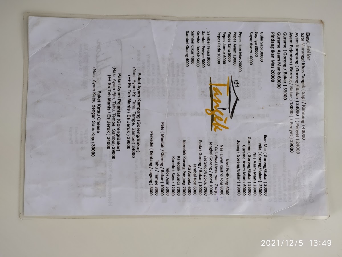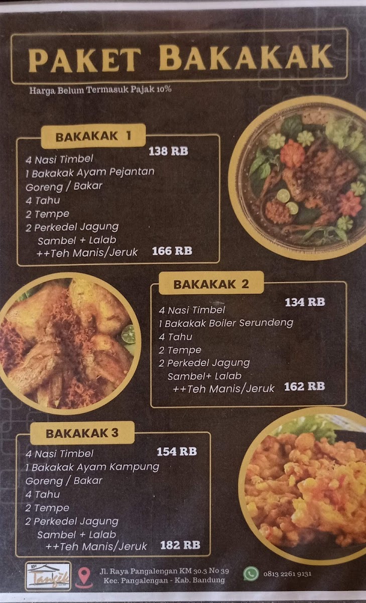 Introducing Rumah Makan Tangek, a delightful Sundanese restaurant nestled in Pangalengan, West Java. This culinary gem specializes in traditional dishes that celebrate the local flavors and ingredients. Their menu features highlights like the Paket Ayam Kampung and Paket Ayam Pejantan, both offering succulent fried or grilled chicken served with tofu, tempe, sambal, and fresh vegetables, all at an attractive price point. The Sate Maranggi, available in goat or beef, is a must-try for satay lovers, infused with a signature kecap marinade that tantalizes the taste buds. For those seeking refreshment, their Longblack coffee, sourced from their own estate, offers an exceptional espresso experience. Set against a stunning mountainous backdrop, Rumah Makan Tangek provides a warm atmosphere, perfect for enjoying good food and scenic views. Although some customers note minor issues, the overall charm and flavor make this eatery a worthwhile stop in Pangalengan.